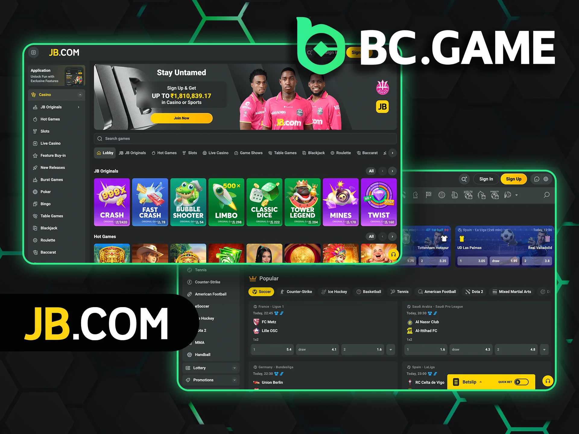 When selecting an alternative, make sure the platform is licensed, follows KYC and AML policies, and supports secure payment methods. Popular alternatives to BC Game in India is JB Casino, offering fast payouts, diverse sports markets, and a wide range of casino games.